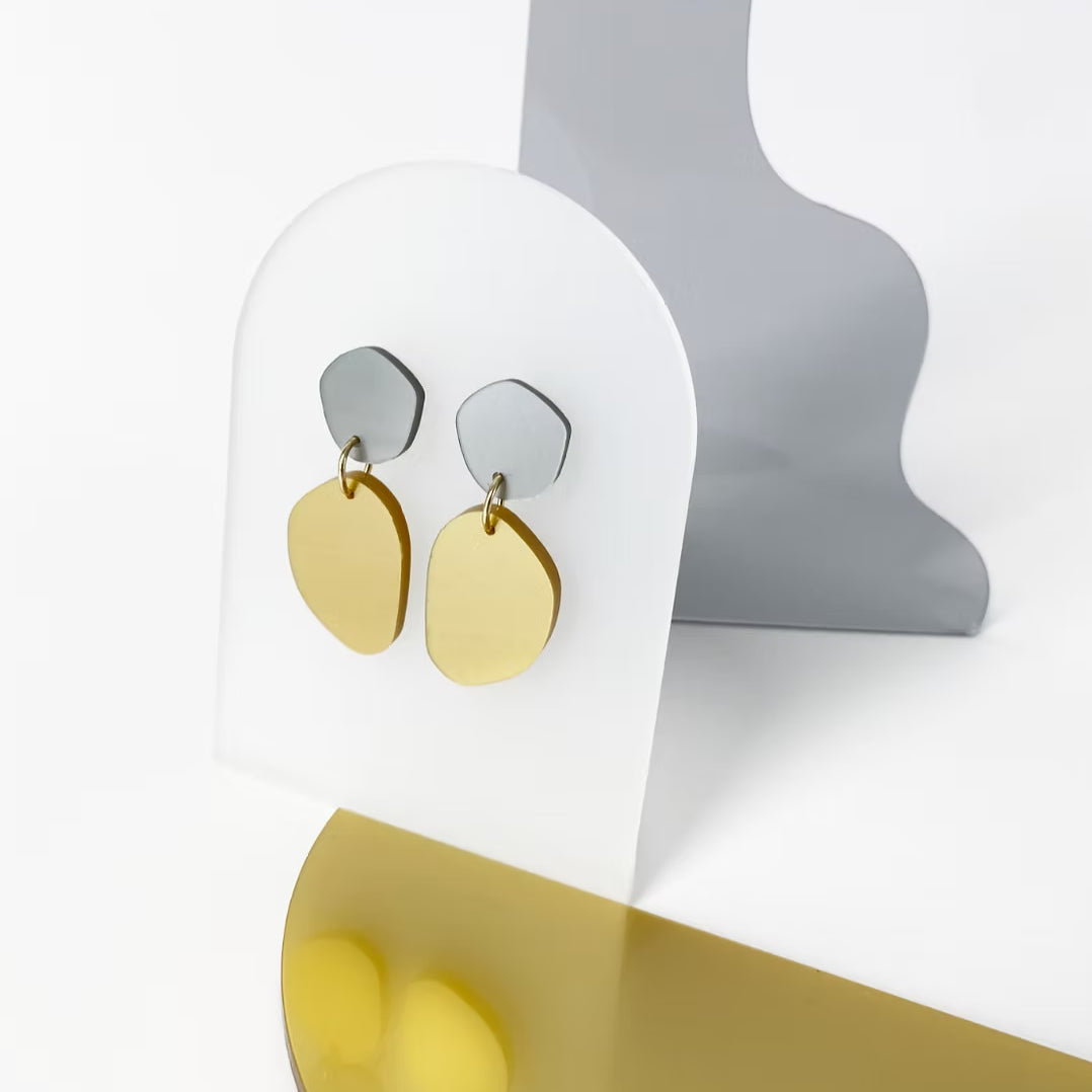 Geometriske statement-øreringe i recycled akryl – fremstillet i Holland