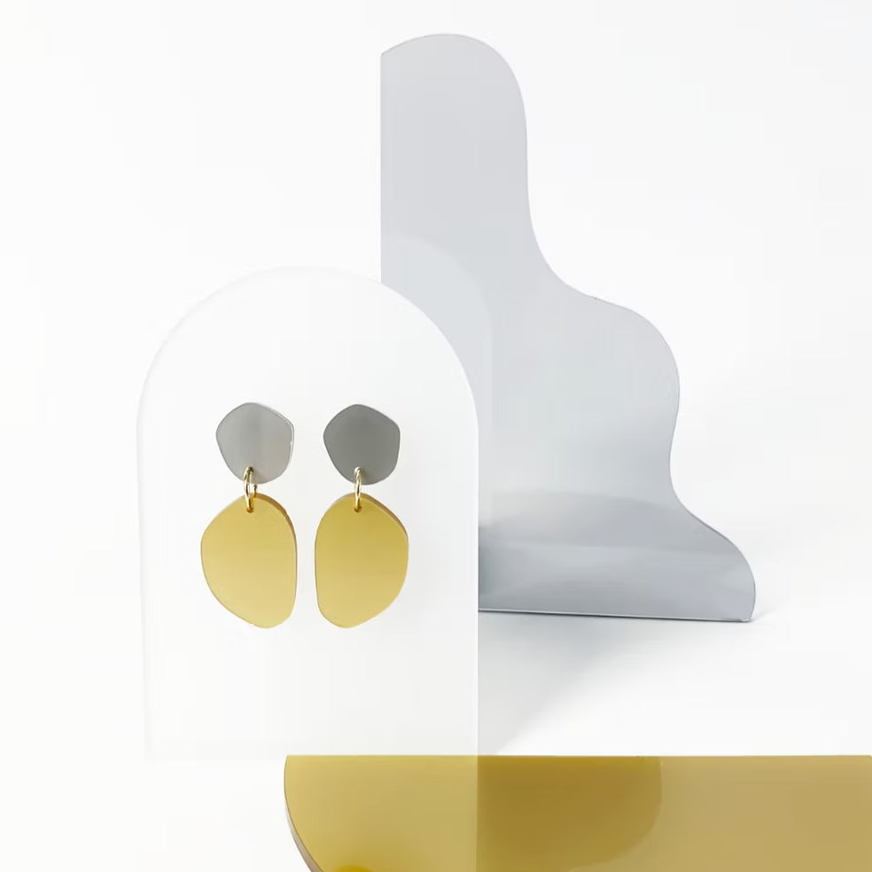 Legende, geometriske og bæredygtige – disse øreringe fra Mimimono er designet og håndlavet af Hannah Kay på hendes studio i Amsterdam. Hvert par er omhyggeligt skabt af 100% genanvendt Greencast® akryl, et materiale fremstillet udelukkende af præ- og post-consumer akrylaffald, som giver plast nyt liv uden at tilføre mere.