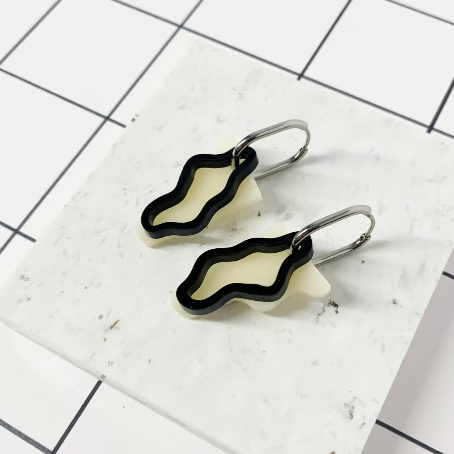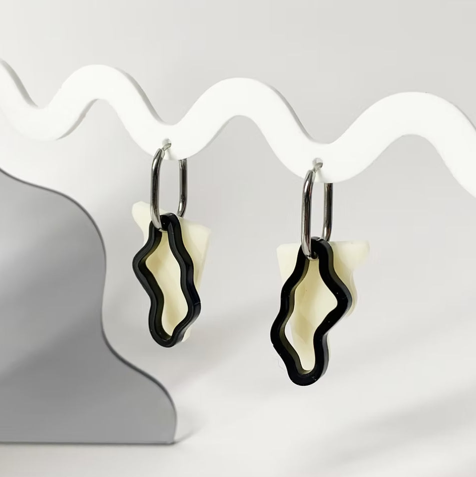 Geometriske statement-øreringe i recycled akryl – fremstillet i Holland