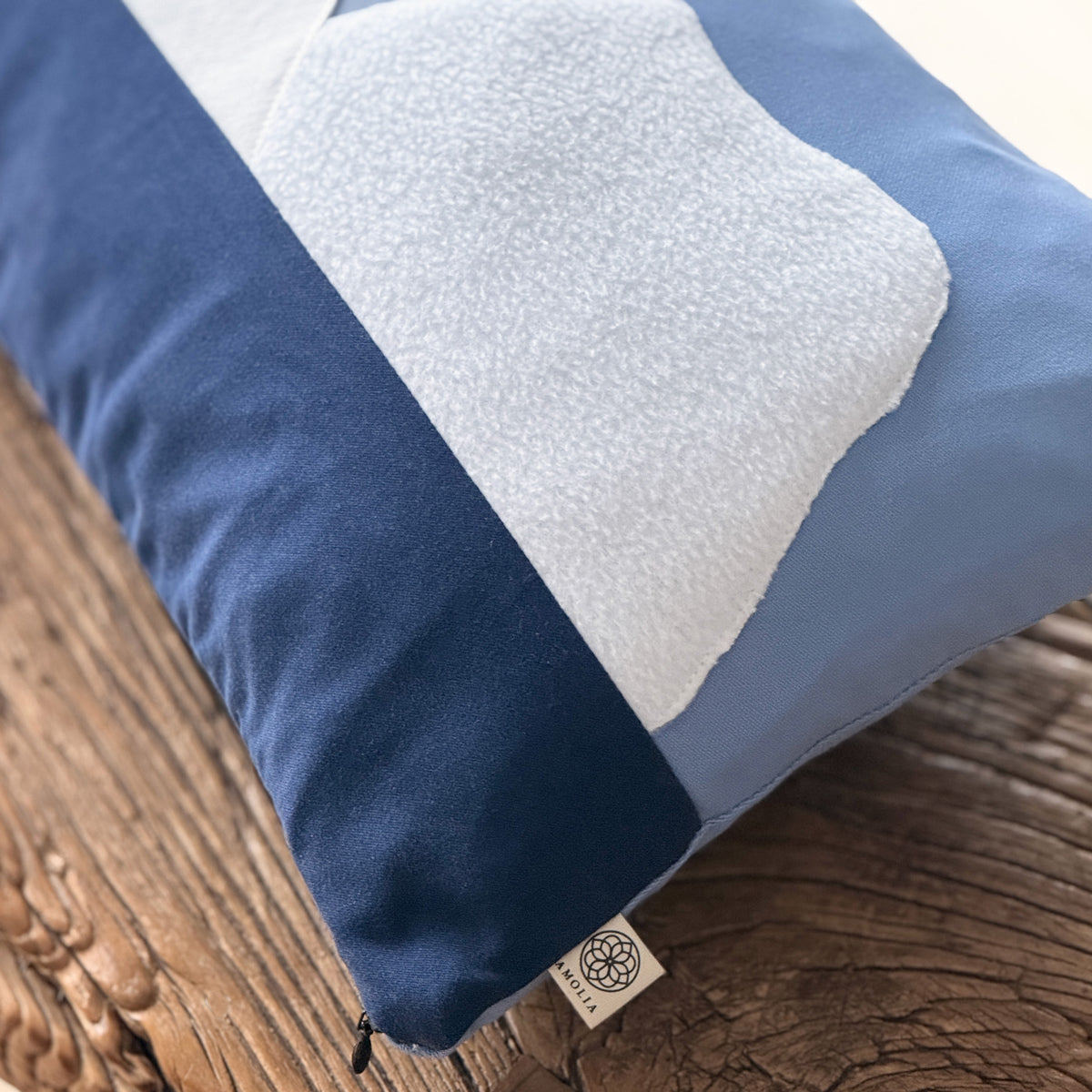 Denne upcyclede pude er inspireret af Grønlands iskolde landskab set fra kysten – hvor bløde blå nuancer møder skarpe hvide kontraster formet af is, hav og himmel. En rolig, grafisk fortolkning, der bringer nordisk natur ind i hjemmet.