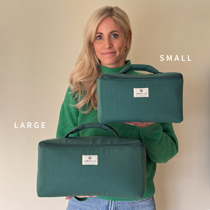 Forestil dig at have et dedikeret sted til dine strikke- eller syprojekter, lavet af materialer i høj kvalitet, der ellers var blevet kasseret. Vores upcyclede sy- og strikketaske er fremstillet af slidstærke grønne hotelduge og giver nyt liv til tekstiler, der ellers ville være gået til spilde.