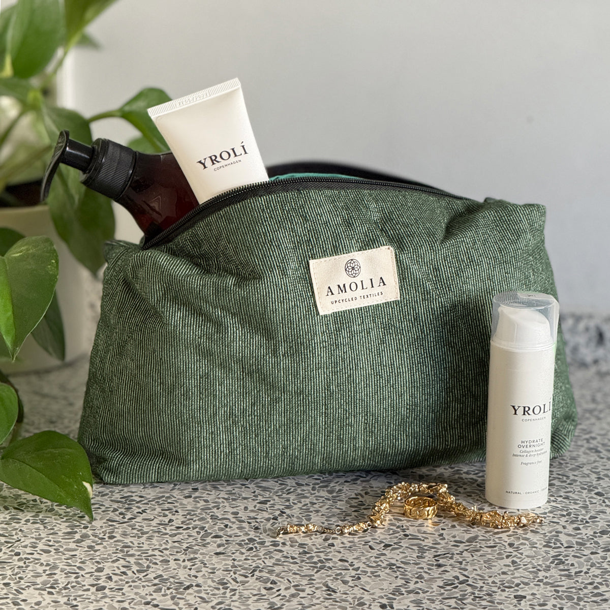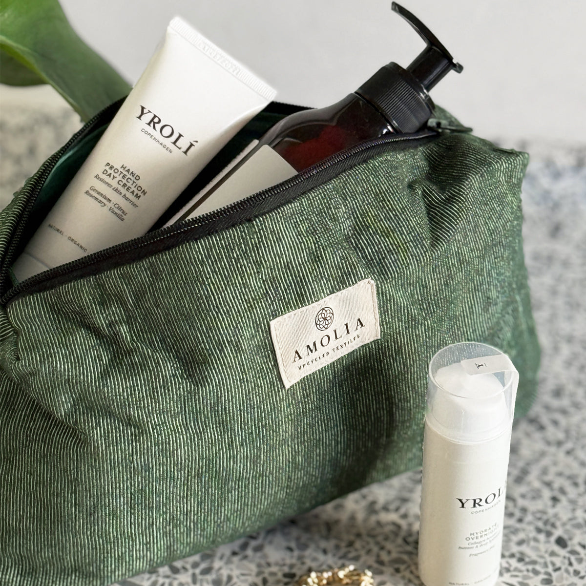 Upcycled toilettaske, lille, skovgrøn, Ella